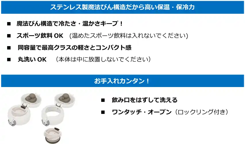 サーモス株式会社は、魔法びんのグローバル企業として、ステンレス製魔法びん構造のケータイマグやタンブラー、スープジャーの他、フライパンなどの調理器具といった幅広いラインアップを展開。断熱技術をはじめとしたさまざまな技術と創造力で、人と社会に快適で環境にもやさしいライフスタイルを提案しています。 |