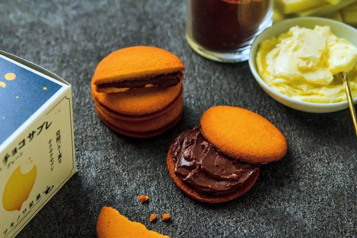 | ホワイトチョコレートと有機ココアパウダーを合わせた濃厚チョコクリームを発酵バター薫るサクサクサブレでサンドしています。 | |||||||||||