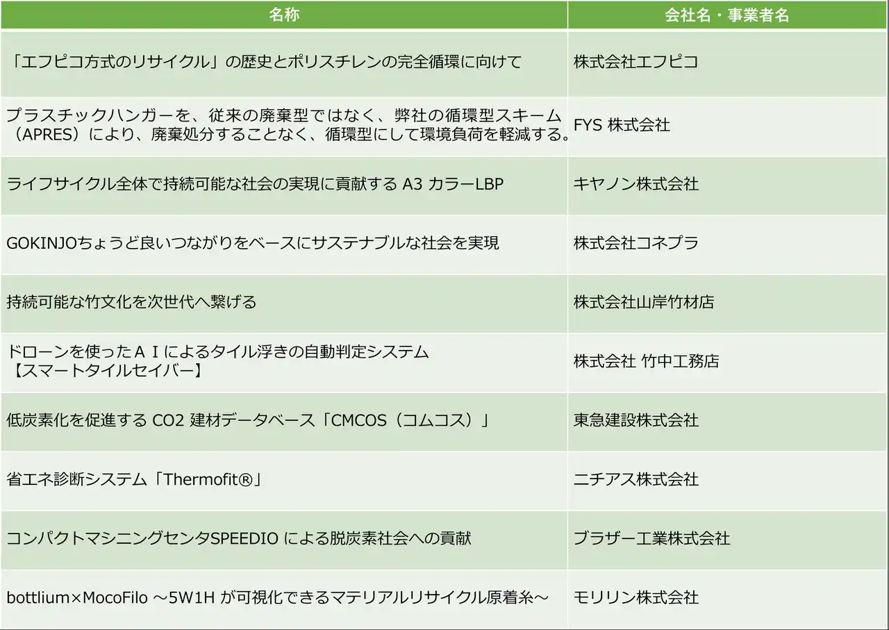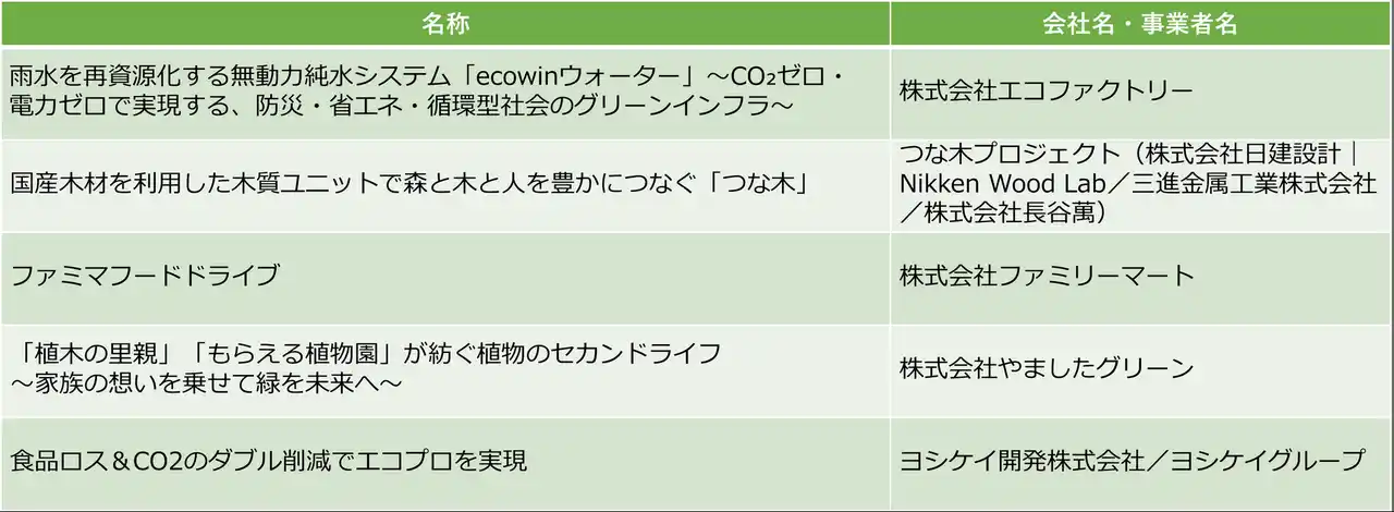 なお、表彰式は12月12日に日本経済新聞社が主催する環境展示会「エコプロ2025」の特設ステージにて実施します。 |