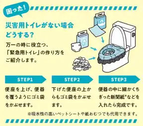東京都では、都政や都民生活に必要な情報を伝えるため、広報紙「広報東京都」を毎月1日に発行しています。9月号は、自宅での避難生活に役立つ防災アクションをご紹介。地震などの災害では電気・水道・下水道などのライフラインが停止し、生活に大きな影響が出ます。中でも意外に見落とされがちなのが「トイレの備蓄」。東日本大震災では、発災から3時間以内に3割の人がトイレに行きたくなったという報告も。今号では、生活必需品であるトイレの備蓄について解説するほか、地震時のリスクを防ぐ家具転対策についても紹介します。これを機会にご家庭の対策を見直してみませんか。 |