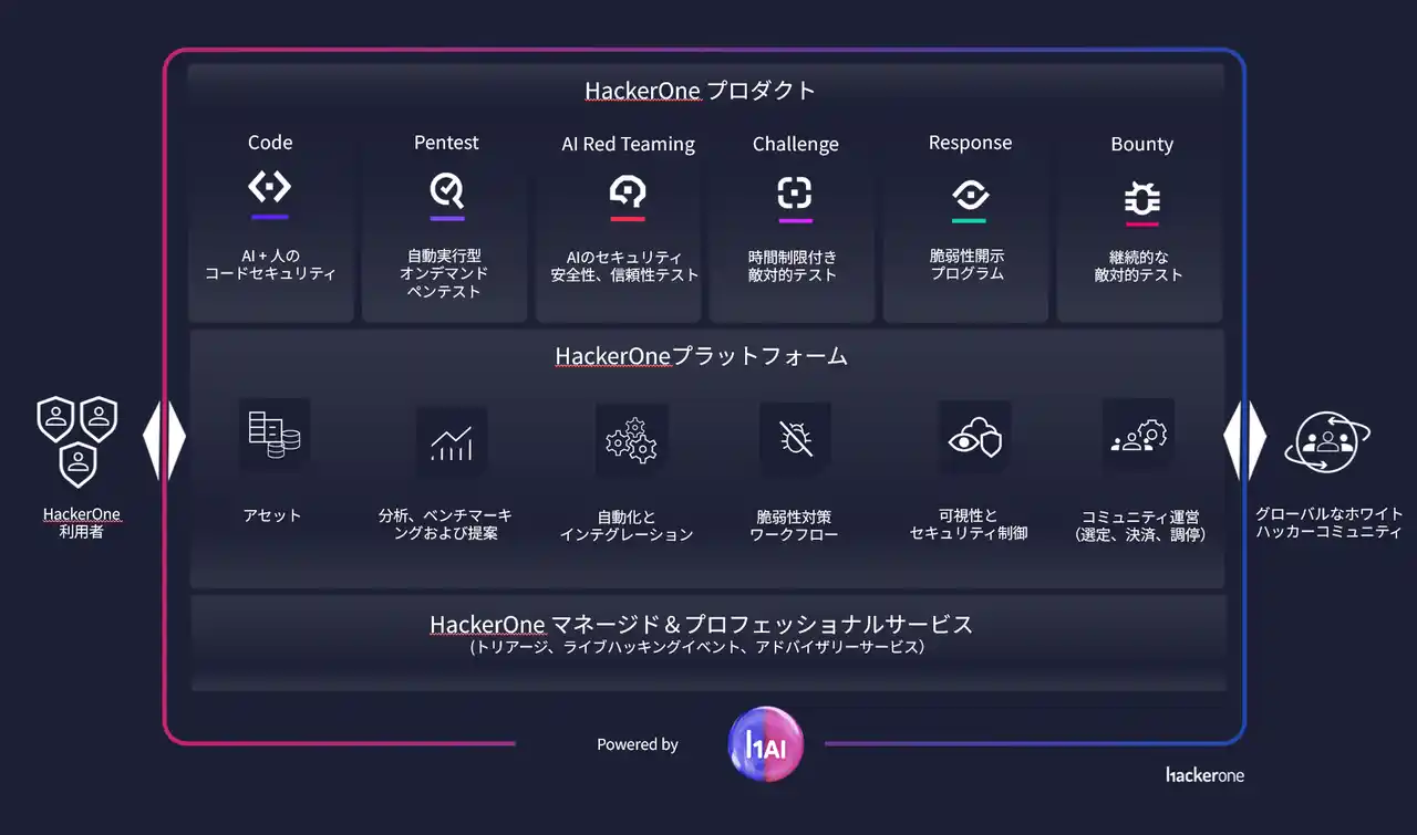 日本全体でデジタルトランスフォーメーションが加速する中、攻撃対象領域(アタックサーフェス)は拡大し、セキュリティの重要性はますます高まっています。HackerOneは、自社のAIセキュリティエージェント「Hai(ハイ)」と、世界200万人以上のホワイトハッカーからなる最大規模のコミュニティの知見を組み合わせ、実用的なインサイトを提供。サイバー攻撃への防御力を強化します。 |