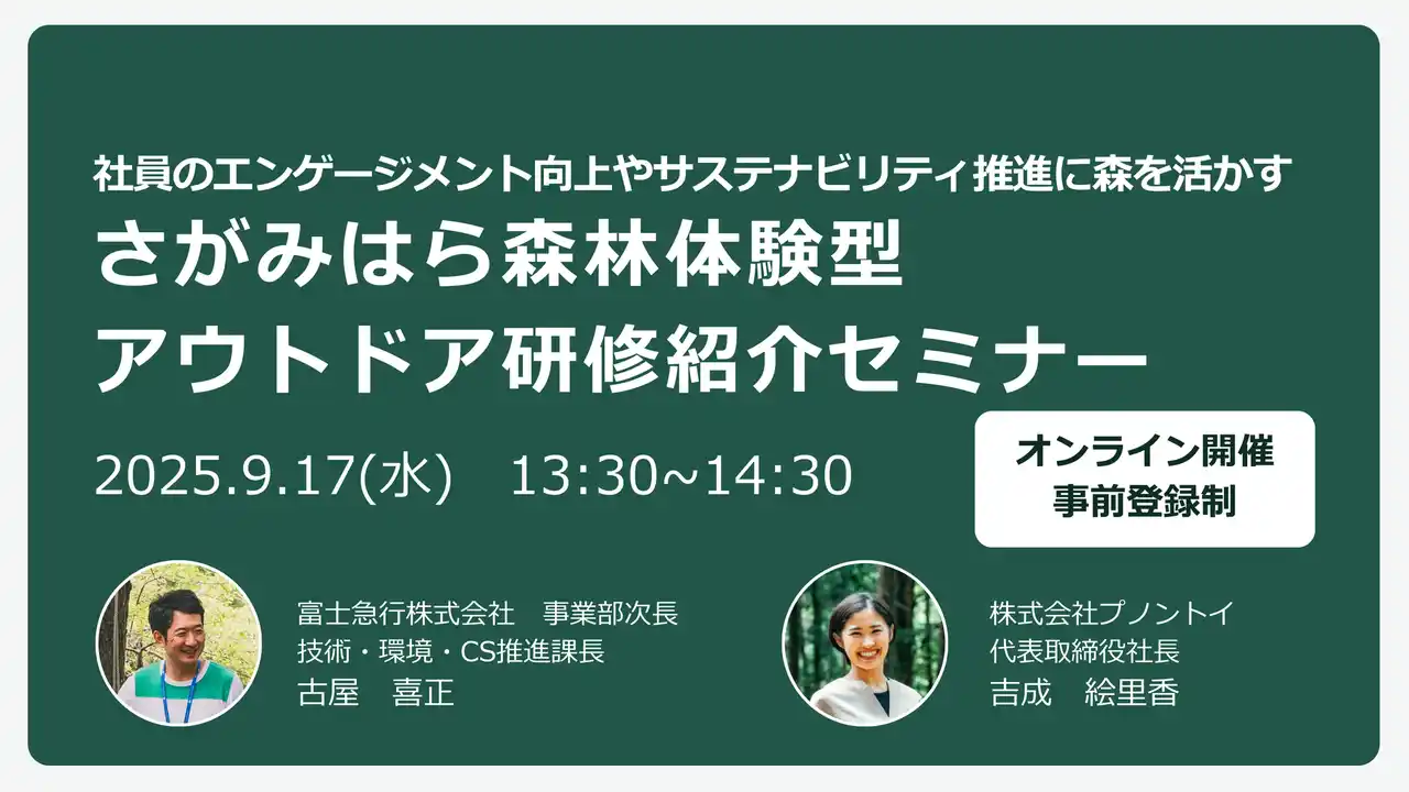 森林・里山の新たな価値を作り届けることをミッションとする株式会社プノントイ(所在地:東京都品川区 代表取締役社長:吉成絵里香)は、富士急グループの相模湖リゾート株式会社(所在地:神奈川県相模原市緑区若柳1634 代表取締役社長:鈴木康弘)と連携し、同社が運営するさがみ湖MORI MORIの広大な森林を活用した企業向け「さがみはら森林体験型アウトドア研修」を本格提供開始いたします。 |