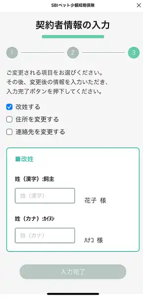 | ・契約者及び被保険者の改姓 | |||||||||
