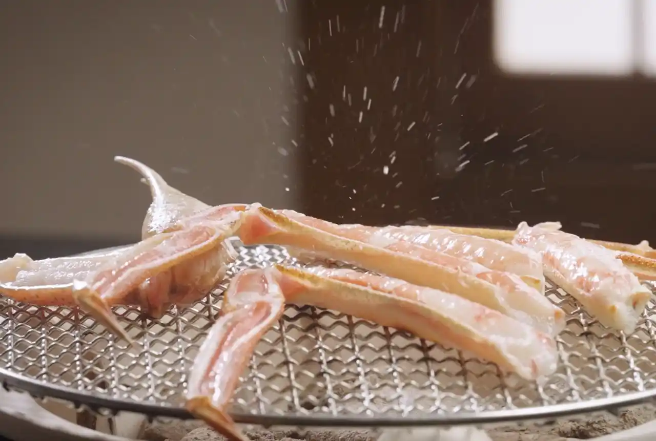かには焼くことで発する香りが食欲をそそり、その香りの中での時間は、特別な体験となります。 |