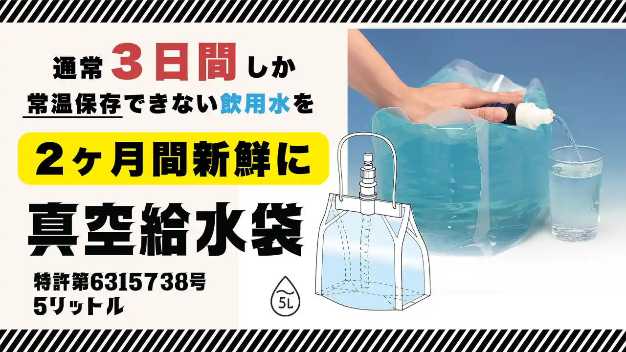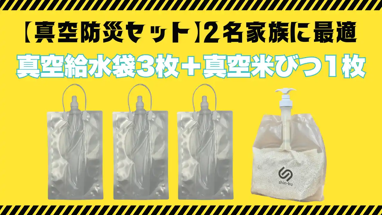 | 「価値ある埋もれた技術を社会実装する」をミッションとする株式会社インターホールディングス(本社:東京都渋谷区/代表取締役:成井五久実、山口翔)は、2025年9月1日「防災の日」に合わせ、クラウドファンディングサービス「Makuake」にて、防災備蓄用の真空給水袋と真空米びつを組み合わせた「防災備蓄セット」の先行販売を開始し、プロジェクト公開後、3時間で目標を達成しました。 | ||||||||||||