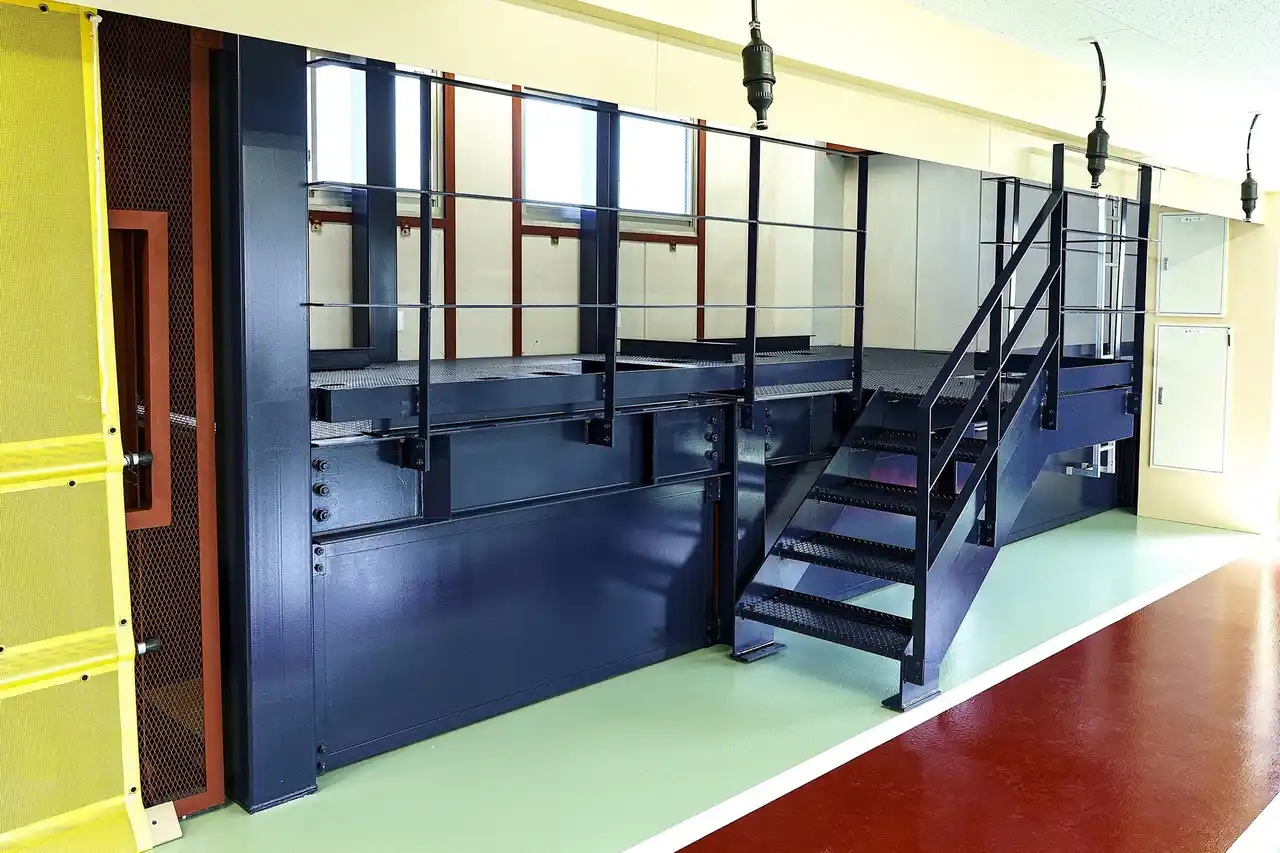 5本の昇降路の内、3本の昇降路の上部には機械室を備えており、巻き上げ機の設置工事のトレーニングを実施することが可能。 |