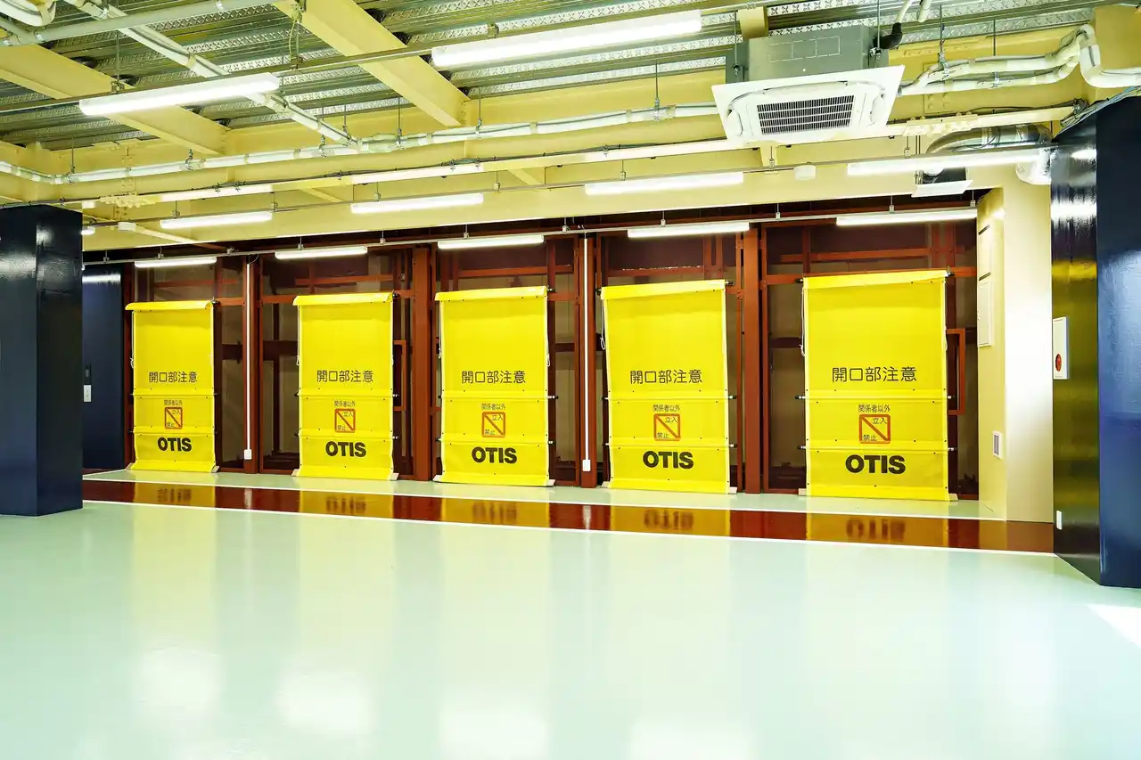 コンストラクション・トレーニング・センターは、既存の「テクニカル・トレーニング・センター」に併設されました。2020年以降、日本オーチスは工事部員の増員に取り組み、その結果、工事部員が約50%増加したため、さらなる研修施設の拡充が必要となりました。そして、この新たな施設を 社員の技術力の向上と施工の協力会社(フィールドパートナー)への教育支援の拡充を目的に建設しました。 |
