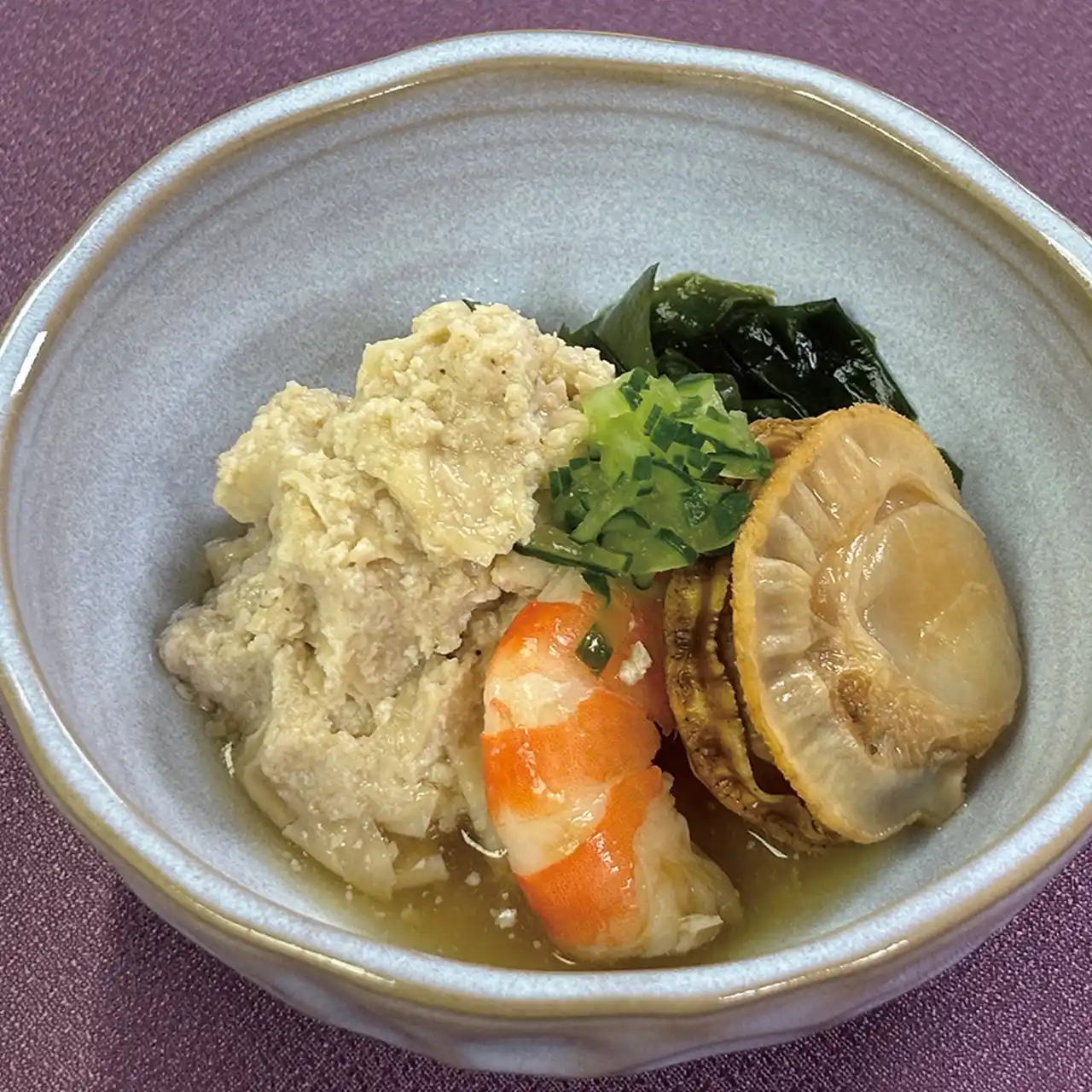 栃木県産の湯波を使用し、折り畳んで引き上げる独特の製法により、しっかりとした食べ応えを実現しました。胡麻ベースの味付けが湯波のやさしい風味と調和し、上品な一品に仕上がっています。液切り不要で、そのまま使える手軽さも魅力です。小鉢としてはもちろん、旬の食材と合わせた季節メニューにも幅広くご活用いただける汎用性の高い商品です。 |