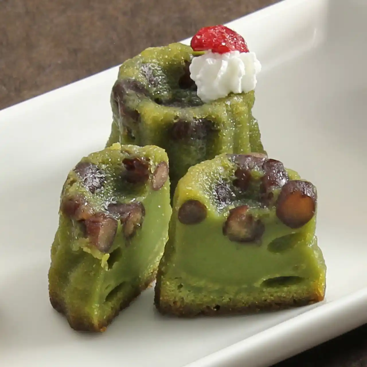 フランスの伝統菓子「カヌレ」を和の素材でアレンジした、もっちりしっとりとした食感が特長のスイーツです。北海道産の牛乳とバターをたっぷり使用した生地に、北海道産小豆と宇治抹茶を加え風味豊かに仕上げました。一粒で贅沢気分を味わえる上品なデザートです。解凍後は10℃で7日間保存可能なため、おせちの甘味としてもご活用いただけます。 |