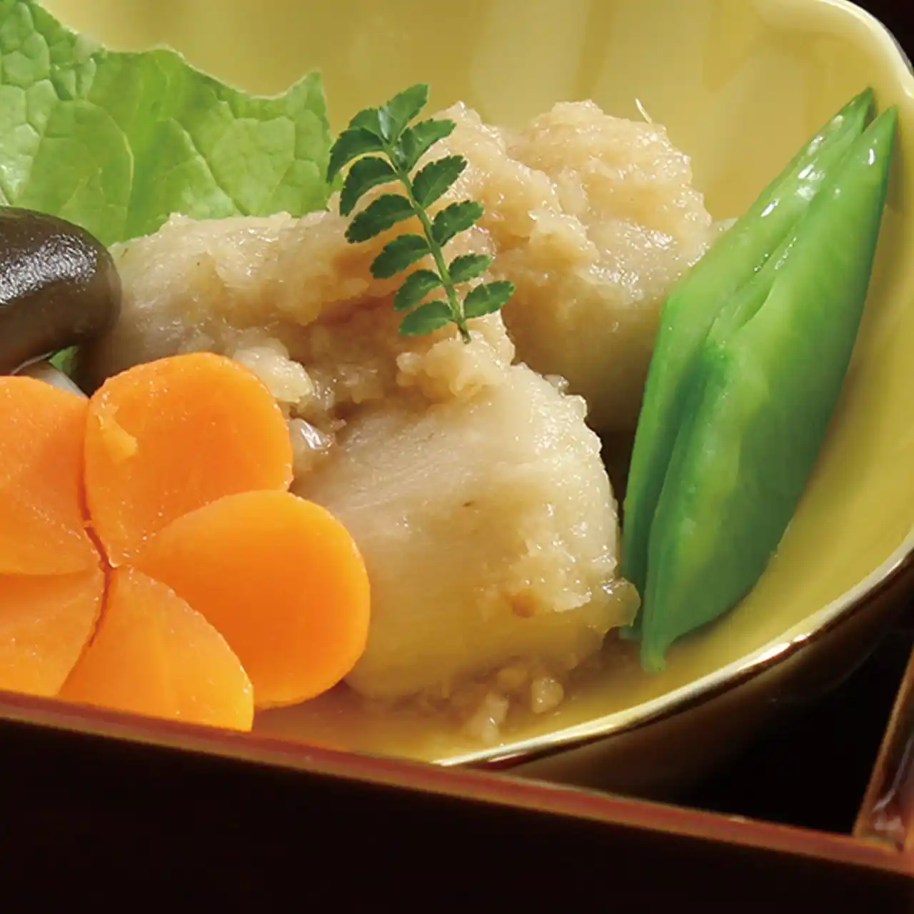 丁寧に下茹でした里芋は、ホクホクとした食感とほどよい柔らかさで、誰にでも食べやすい固さに仕上げました。そぼろの肉の旨味に、生姜のピリッとした風味がアクセントとなり飽きのこない味わいです。解凍後そのままでも使用でき、温めることでさらに美味しさが引き立ちます。子どもからご年配の方まで、幅広くおすすめできる一品です。 |
