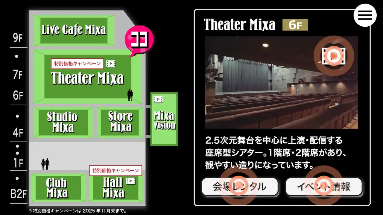 ついては、「Hall Mixa」「Theater Mixa」を中心に「ラストイヤー特別価格キャンペーン」を開催中です。 |