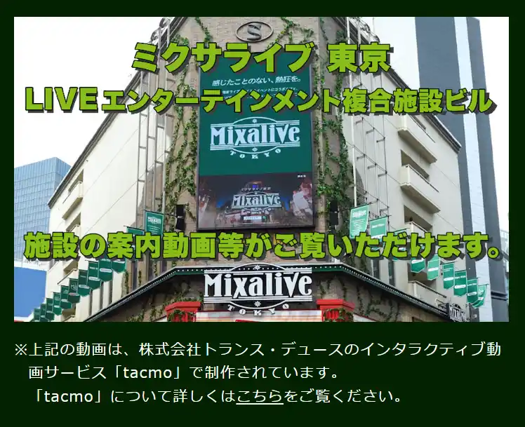 【2】 tacmo「Mixalive TOKYO」施設内覧動画について |