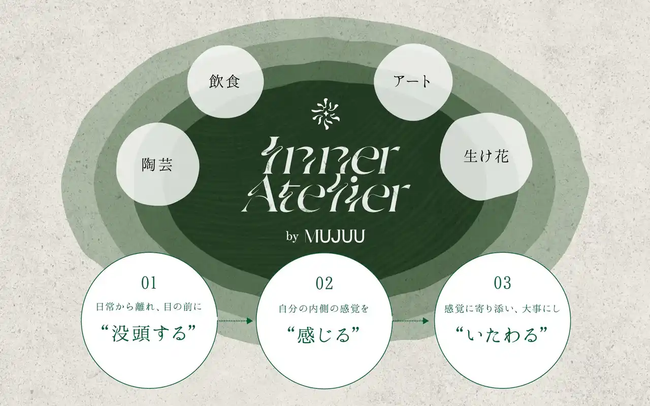 「Inner Atelier by MUJUU」は今後も定期開催を予定しており、飲食、アート、ウェルネスなど、さまざまなジャンルの専門家を迎えながら、五感を通じて“自分を癒す時間”を提供するラインナップを展開予定です。 |