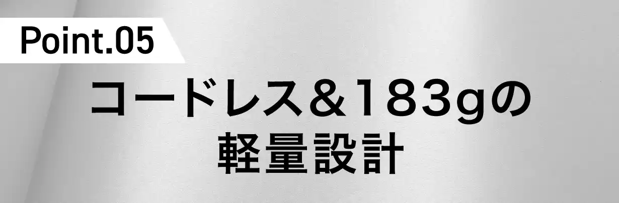 本体重量わずか183g(バッテリー込み)という驚くほど軽量な設計。コードレスだから作業中にコードが邪魔になることもなく、屋外や現場でもすぐに使える機動性の高さが特徴です。 |