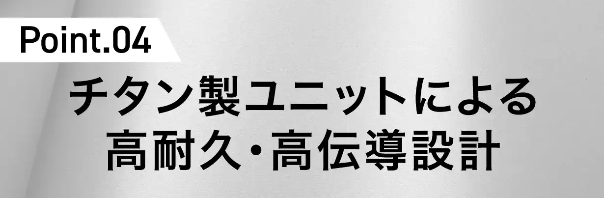NeoBladeは、切断性能の要である振動ユニットにチタン素材を採用。超音波の振動エネルギーをロスなく伝え、高出力をしっかり刃先まで届けます。熱や摩耗にも強く、安定した切れ味を長くキープできるのもこの構造のおかげです。 |