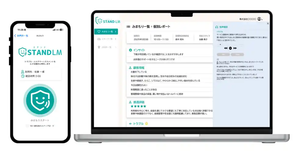 ワンダフルサポート株式会社(本社:東京都新宿区、代表取締役:岡谷 厚仁)と株式会社ENBASE(本社:東京都中央区、代表取締役:無尽 洋平)は、訪問介護・看護事業のAI活用とDXを推進するための業務提携を締結します。 ENBASEが提供する接客アンビエントAI「スタンドLM」でケア現場の音声を自動解析し、解析結果をマネジメントや業務効率化に活用します。人手不足やDXの遅れが顕著な介護・看護業界において、AIによりスタッフが働きやすい環境の構築を目指します。 |