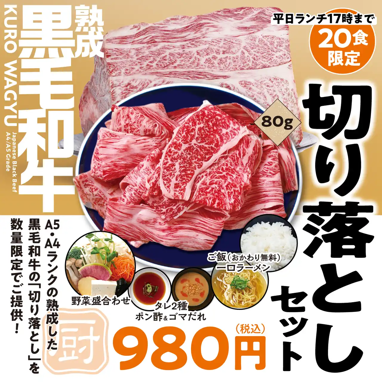 ランチタイムは赤坂で開業以来の不動の大人気メニュー 熟成黒毛和牛の「切り落とし しゃぶしゃぶセット」が980円(税込)、赤坂・新宿店でも大人気のお肉たっぷり「まんぷくセット」1,320円(税込)を毎日それぞれ限定20食でご提供。 |