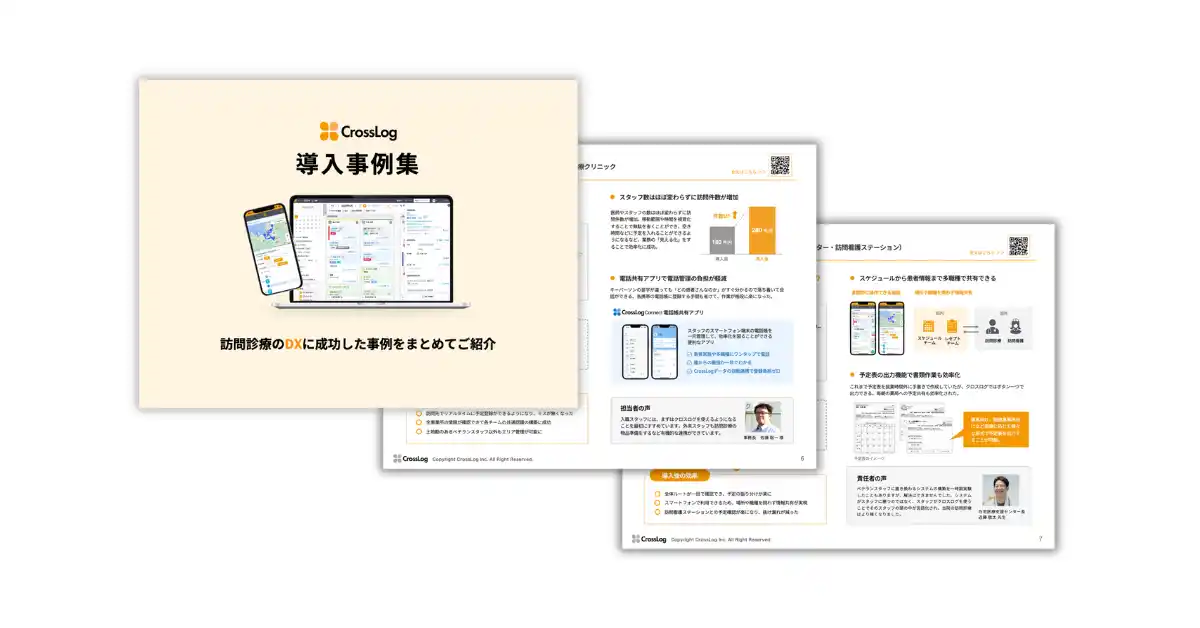 スケジュール管理や業務効率化に成功した8つの事例をまとめました。訪問診療の現場で役立つ具体的改善ポイントや活用機能がわかります。ぜひ事例集をダウンロードして現場運営の参考にしてください。 |