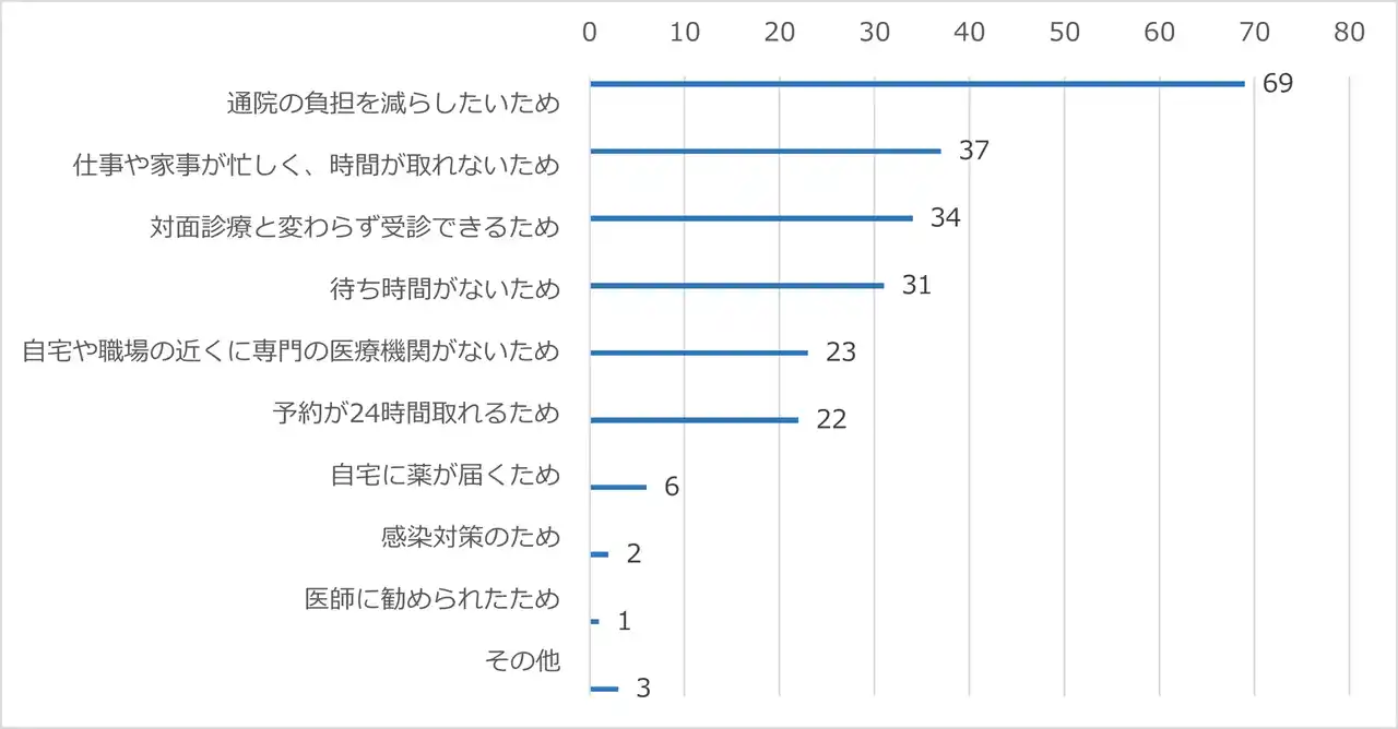 オンライン診療を選ぶ理由 … 「通院の負担を減らしたい」69名 |