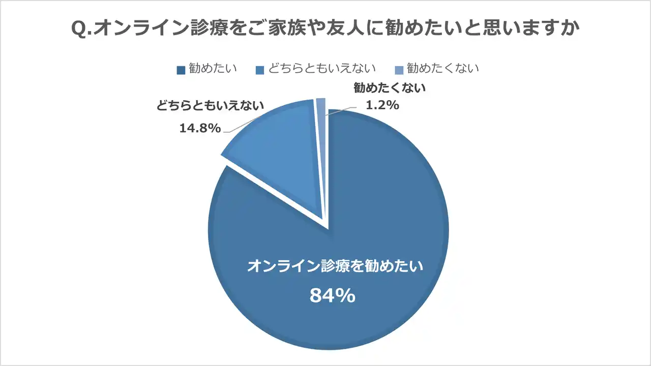 ご家族や友人にオンライン診療を勧めたい … 84% |