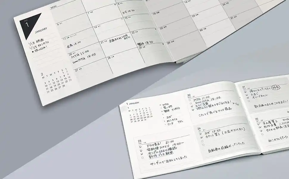 2026年版では、大人の手元に映える新色カバー「ゴールド/シルバー/ソフトブラック」を追加しました。シーンに合わせて選べる上質なカラーは、予定管理をより特別な時間に演出します。 |