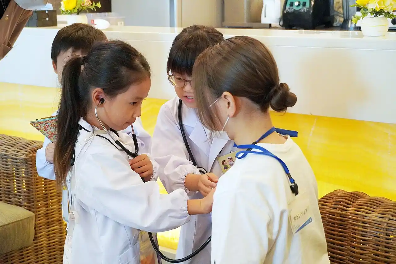 子どもたちは、介護士・看護師・管理栄養士・リハビリ職など、さまざまな職種にちなんだ福祉体験を通じて、仕事の楽しさや奥深さを、自然と感じ取っていきます。制服を着て誰かのために動く体験の中には、「ありがとう」と言われる喜びや、小さな自信につながる瞬間がたくさん詰まっています。“遊び” と “学び” が一体になったこの取り組みは、未来の自分を考えるきっかけになる貴重な時間となるはずです。