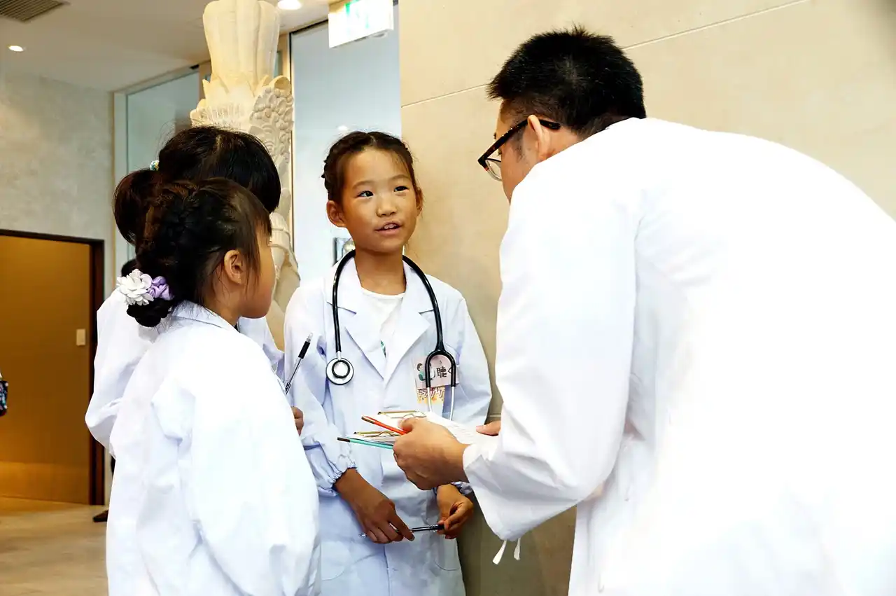 子どもたちは、介護士・看護師・管理栄養士・リハビリ職など、さまざまな職種にちなんだ福祉体験を通じて、仕事の楽しさや奥深さを、自然と感じ取っていきます。 制服を着て誰かのために動く体験の中には、「ありがとう」と言われる喜びや、小さな自信につながる瞬間がたくさん詰まっています。 “遊び” と “学び” が一体になったこの取り組みは、未来の自分を考えるきっかけになる貴重な時間となるはずです。 |