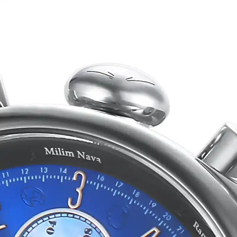 | 魔王リムルのカリスマ性と包容力を表現したダークブルーの文字盤は、角度によって煌めくサンレイ仕上げ。日本製クロノグラフムーブメントと、「智慧之王(ラファエル)」を搭載し、高い精度と実用性を兼ね備えました。ケースはステンレス製で耐久性も抜群。日常生活強化防水仕様で安心してお使いいただけます。 | |||||||||