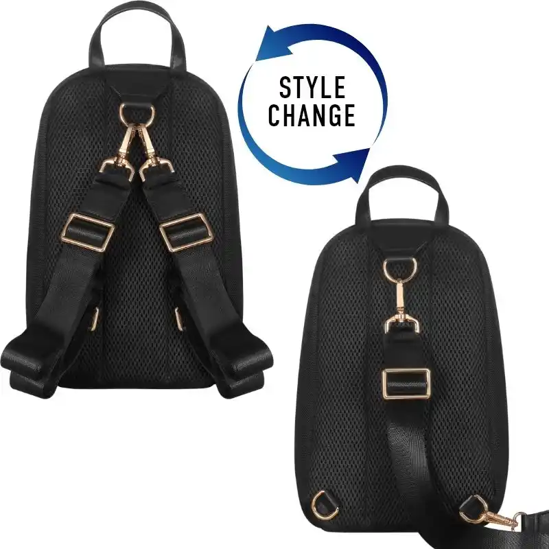 | 72cm~120cmまで調節可能なショルダーベルト2本は付け替え自由で、ミニリュックまたはスリングバッグとして使い分けが可能です。 | |||||||||