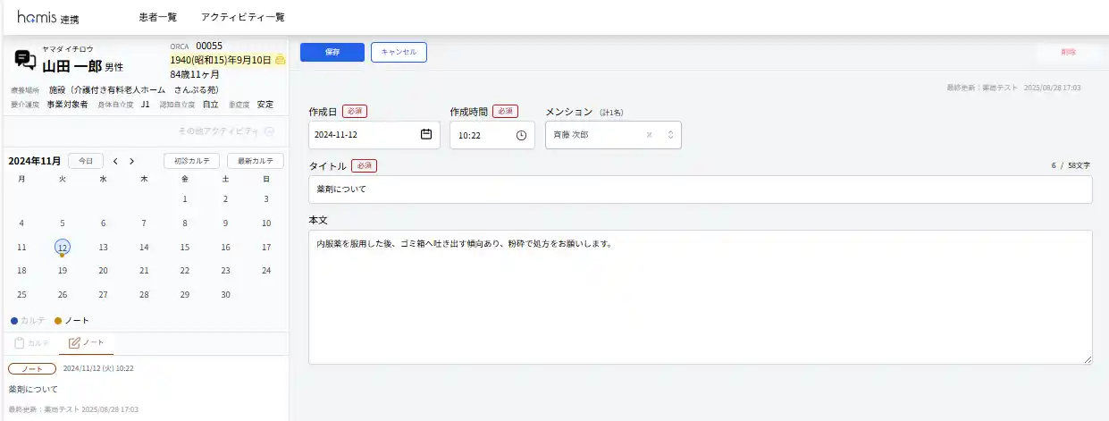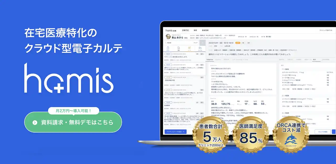 訪問診療向けクラウド型電子カルテ「homis」 |