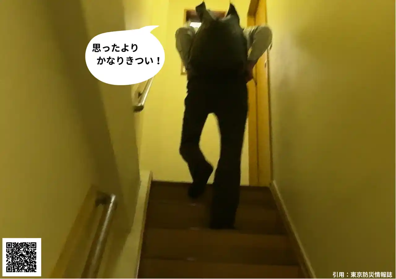 災害時、マンション生活で最も大きな課題のひとつが「水の確保」です。 弊社でも、給水車から20Lのポリタンクに水を汲み、マンションの階段を上がる体験をしました。 3階建てのビルをリュックに入れて往復しただけでも息が切れ、これを10往復繰り返すのは到底不可能に感じるほどのつらさでした。 もし10階建てのマンションで同じことを行うとすれば、その負担は想像を超えます。 |