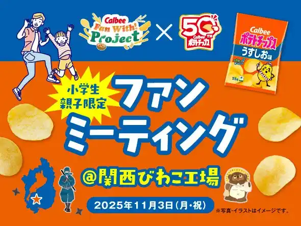 滋賀県湖南市の関西びわこ工場でポテトチップス発売50周年を記念した小学生親子限定のファンミーティングを2025年11月3日(月・祝)に開催します。製造工場の見学やできたて商品の試食など親子で楽しめる体験プログラムをご用意しております。応募の締め切りは9月12日(金)23:59です。 |