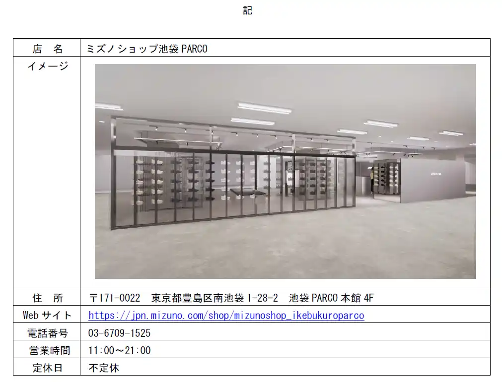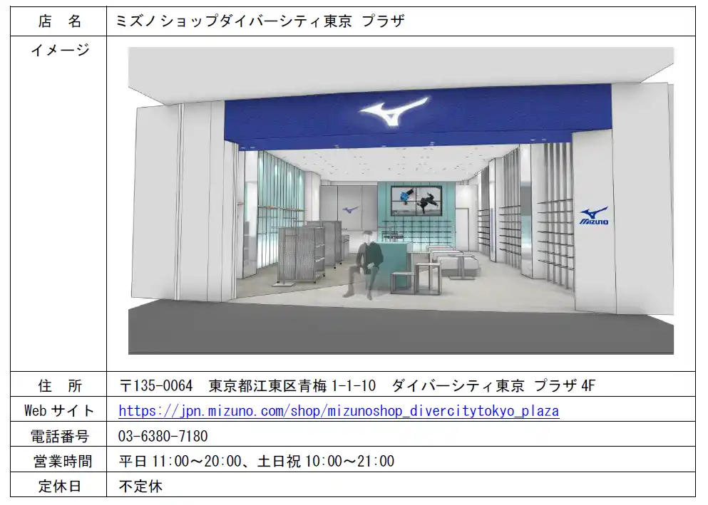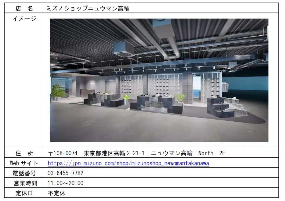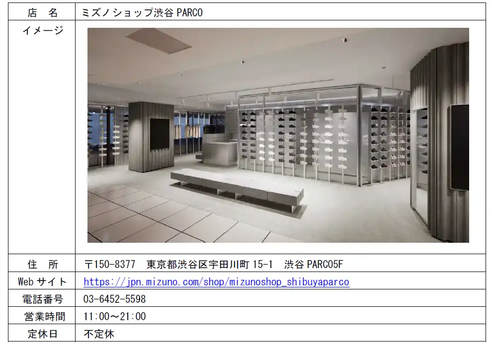 今回オープンする4店舗は、9月5日に「ミズノショップ池袋PARCO(パルコ)」、9月9日に「ミズノショップダイバーシティ東京 プラザ」、9月12日に「ミズノショップニュウマン高輪」、9月19日に「ミズノショップ渋谷PARCO」です。この4店舗はいずれもスポーツスタイルシューズを中心とした商品構成で、一部ライフスタイル品なども展開します。それに加えて「ミズノショップダイバーシティ東京 プラザ」では、ランニングなどの競技スポーツ品やジュニアアイテムも展開します。 |