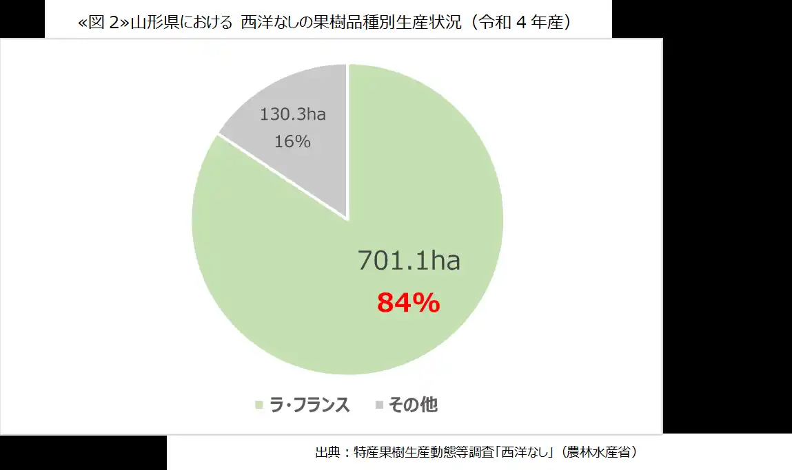 西洋なしでは全国の約8割の収穫量を誇る山形県。その中でも約84%もの割合を占めるのがラ・フランスとなっています。本商品はそんな山形県産ラ・フランス果汁を30%使用しています。 |