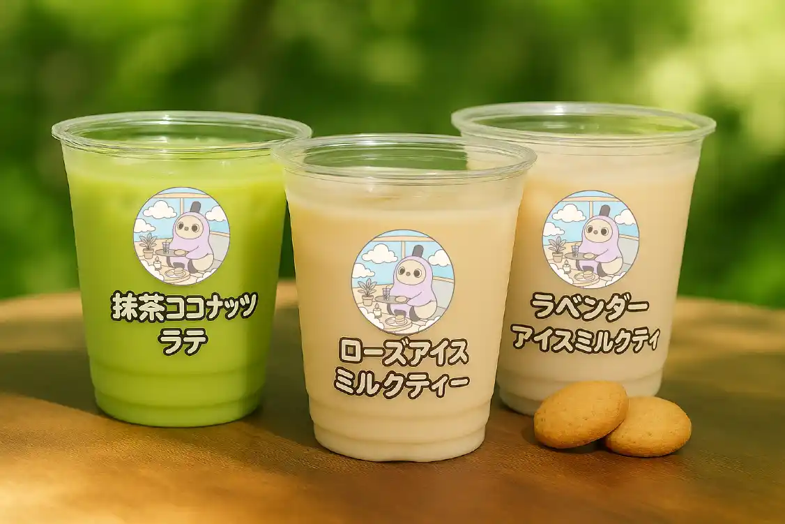 ■セット商品:観覧車乗車チケット、アイスドリンク(全3種:抹茶ココナッツラテ/ラベンダーアイスミルクティー/ローズアイスミルクティー)、フード |