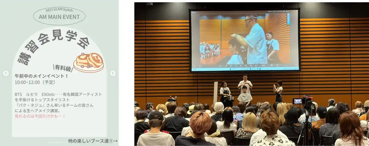 近年美容業界でも採用・定着は大きな課題となっています。美容室 Ashでは、2025年4月新卒採用が過去最高の人数を実現しましたが、これはK-POPアーティストのスポンサード活動や採用の手法を変更するなど、様々な取り組みを行った結果です。しかし、「採用して終わり」ではなく、入社後の定着こそが最重要と考えています。今回の「NEO GLAM by Ash」は、美容学生に向けたイベントではあると同時に、スタッフがK-POPなど最新トレンドに触れる機会ともなり、実際に定休日にもかかわらず多数のスタッフがデモンストレーション見学に参加しました。 |