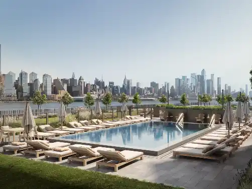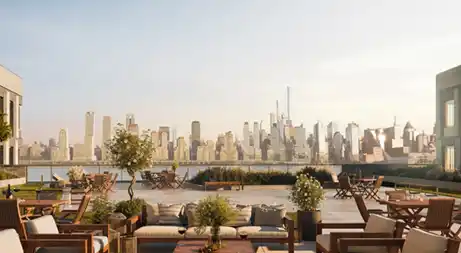 当プロジェクトは、地上9階建て・総戸数73戸の分譲マンション開発事業です。専有部は、2ベッドルーム、3ベッドルームを中心に、全4プラン(88平方メートル ~218平方メートル )を用意。近隣エリアに通勤する単身世帯やファミリー世帯、ラグジュアリー志向のカップルなどをターゲットに、多彩な間取りを揃えました。共用部には、マンハッタンを望める屋上庭園やBBQグリル、屋外プールを備えたほか、パーティールーム、ヨガスタジオやトレーニング器具を備えたフィットネスセンター、DIYなどが楽しめるメイカースペース、キッズルーム、シアタールーム、ラウンジなど、多様なライフスタイルに対応できる、さまざまな施設を備えました。 |