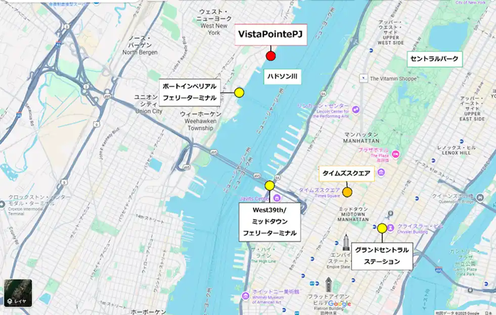 当プロジェクトが位置するウエストニューヨークのリバーフロントエリアは、マンハッタンやハドソン川を眺望できる人気エリアで、希少性の高い立地です。マンハッタンの「ウエスト 39 ミッドタウンフェリーターミナル」まで約2.6km、ジャージーシティまで約6.5kmの立地で、マンハッタン中心部へはバスや電車、フェリー、無料シャトルバス等でアクセスが可能です。また、近隣にはスーパーマーケットや医療施設、教育施設なども充実しており生活利便性にも優れています。 |