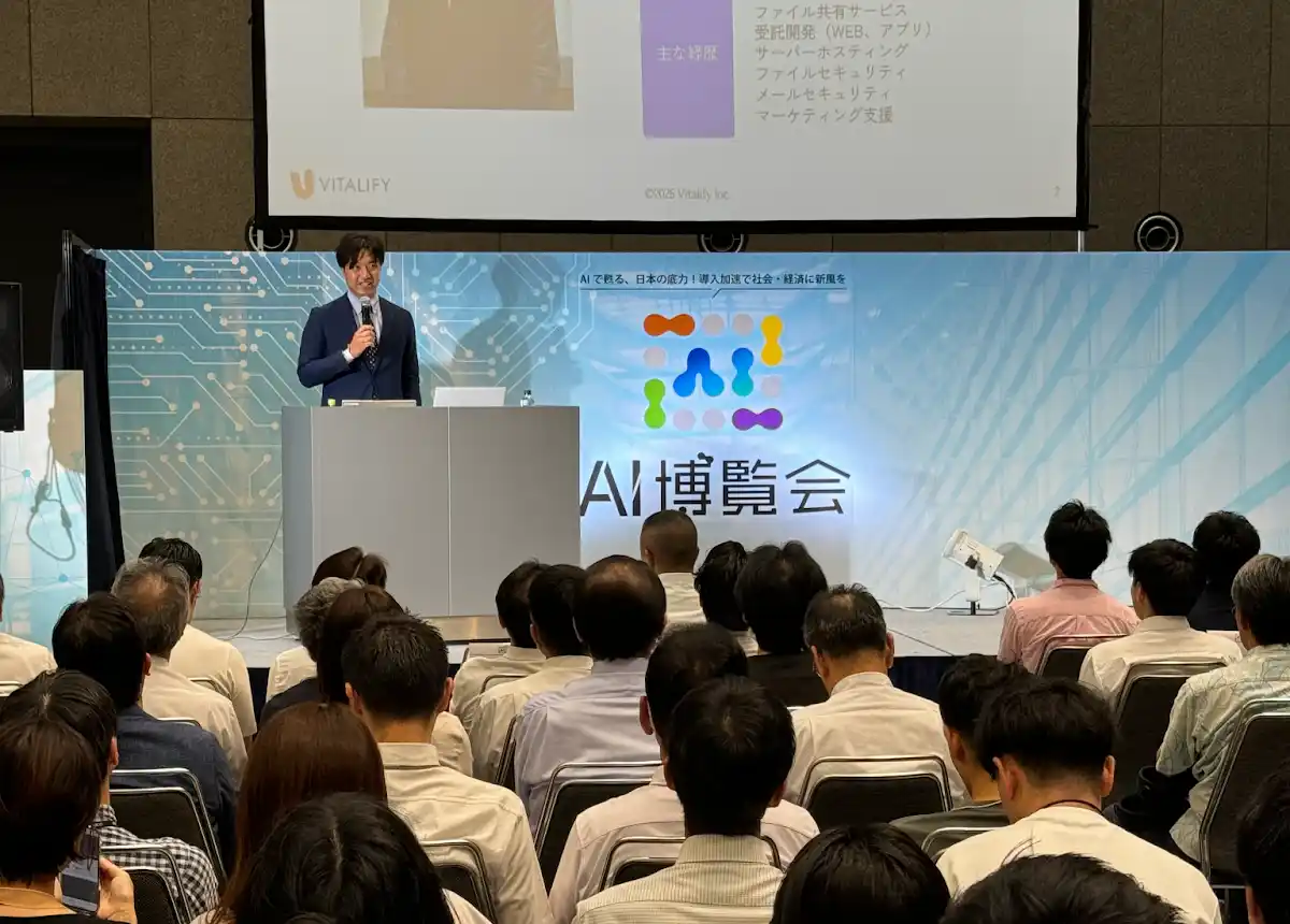生成AIを活用したSaaSサービスの提供を行う株式会社バイタリフィ(東京都渋谷区、代表取締役:板羽晃司)は、2025年8月27日(水)、8月28日(木)の2日間、東京国際フォーラムで開催された「AI博覧会 Summer 2025」に出展しました。 |