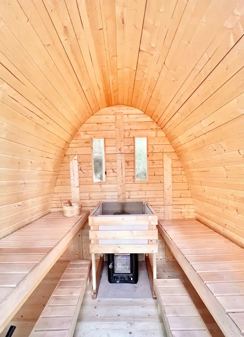 2025年5月に新設されたステンレス製水風呂により、サウナ上級者も満足の本格的な冷温交互浴が可能になりました。薪サウナで十分に温まった身体を、野天ひんやり水風呂でクールダウンすることで、理想的な「ととのい」状態を実現できます。 |