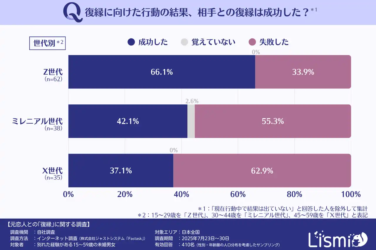 3.Z世代の復縁成功率66.1%、X世代の約1.8倍に達する |