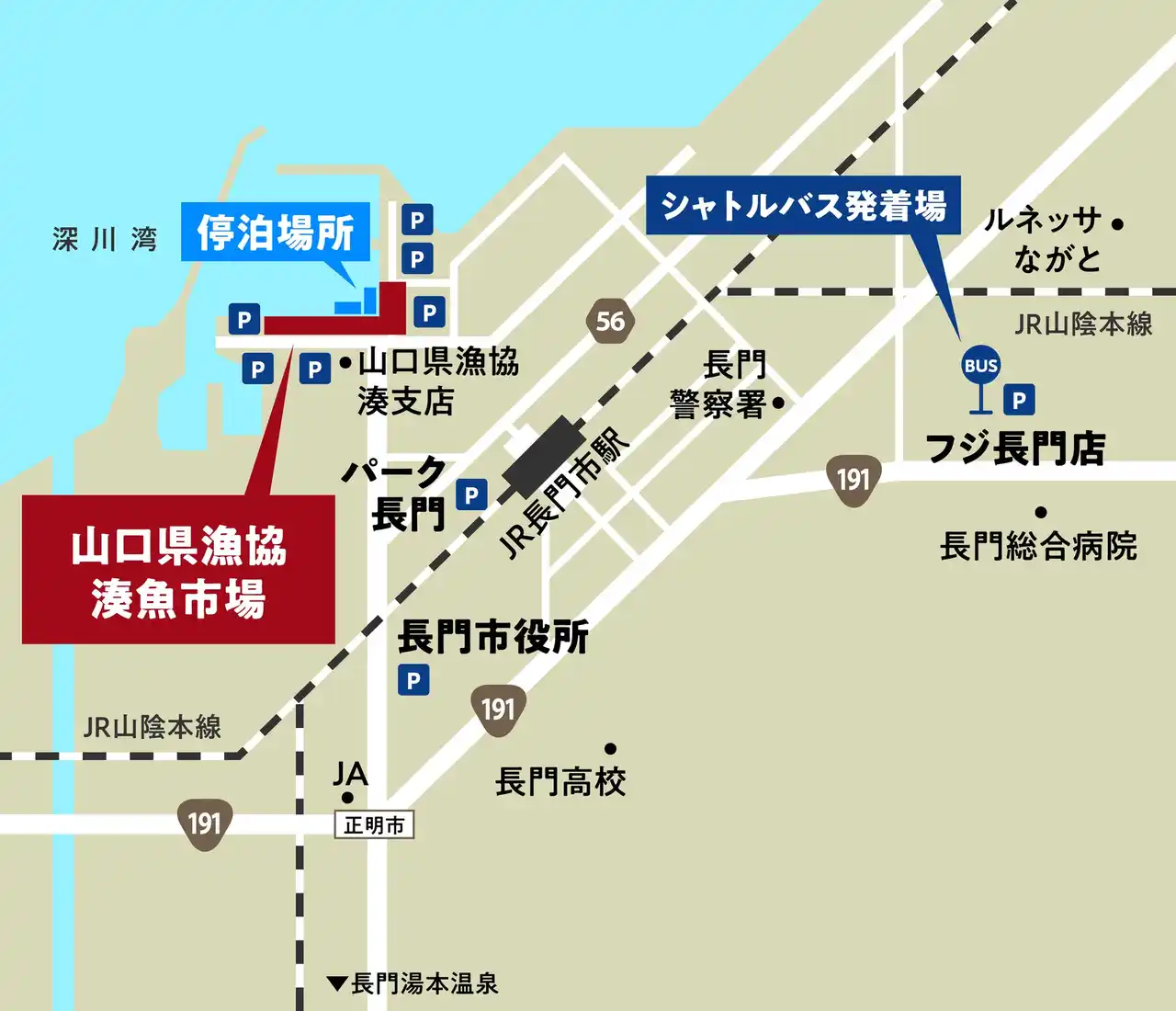 | JR山陰本線「長門市駅」より徒歩約8分 | |||||||||
