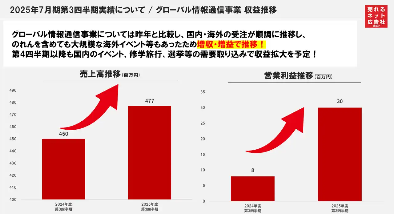 なお、本件は2026年7月期の売れるネット広告社グループの連結業績にプラス寄与見込みです。 |