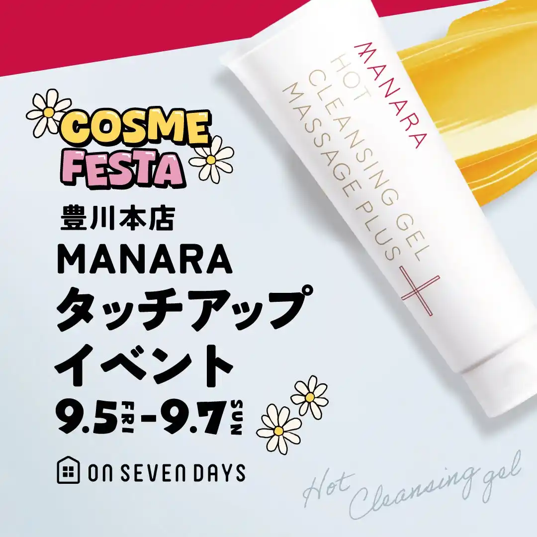 ::::::::::::: 【豊川本店】 MANARA タッチアップイベント 9/5-9/7 ::::::::::::: マナラのスタッフが入店し、ご希望の方へタッチアップを実施しながら商品の魅力や正しい使い方などをご案内します。 ※予約不要 |