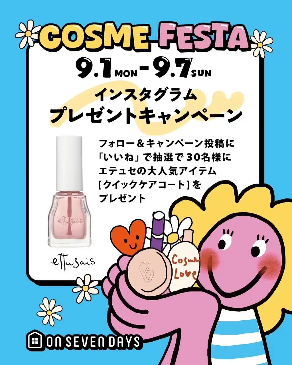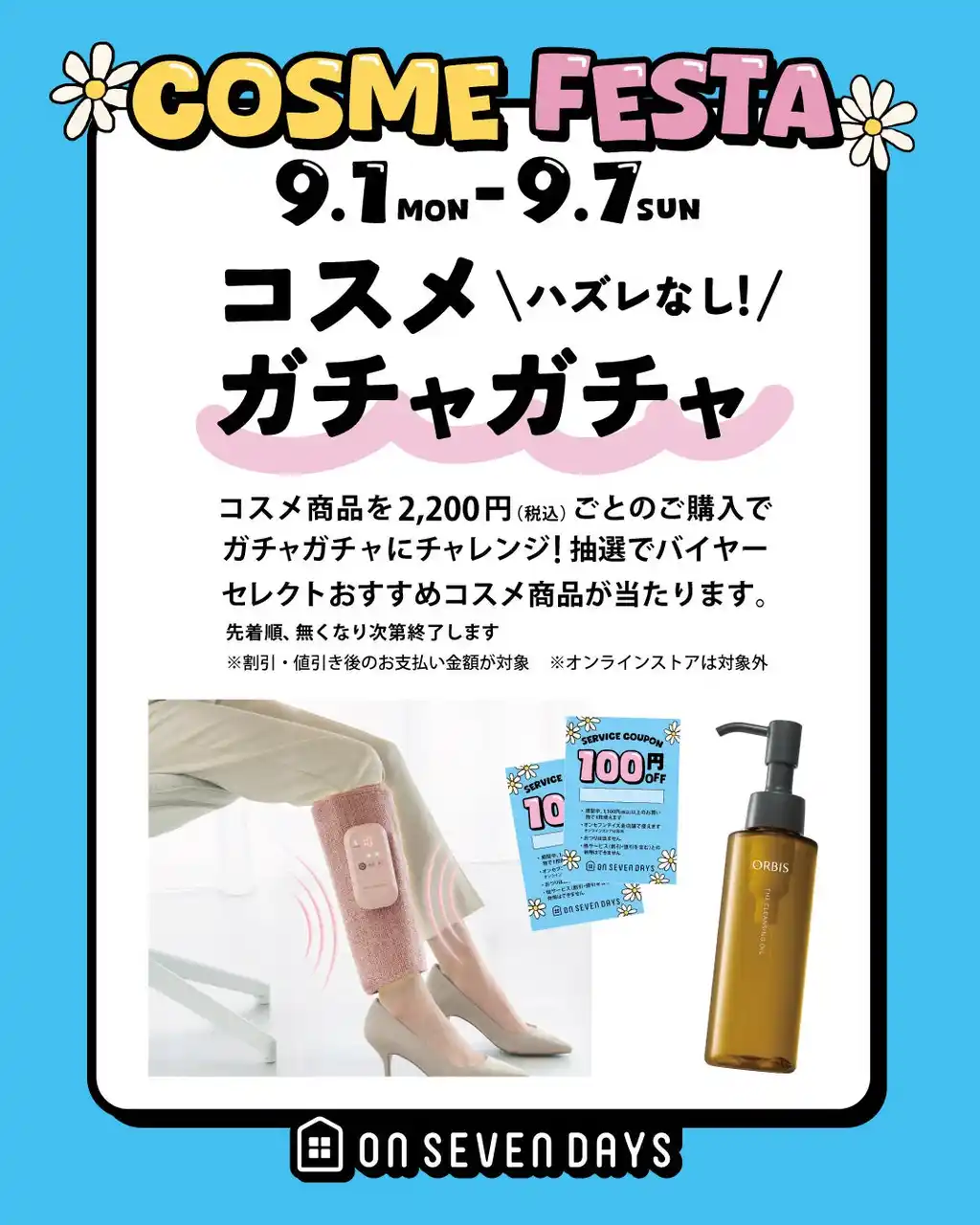 | オンセブンデイズ「コスメフェスタ」9/1(月)-9/7(日) ※ミュープラット金山店での開催はございません |