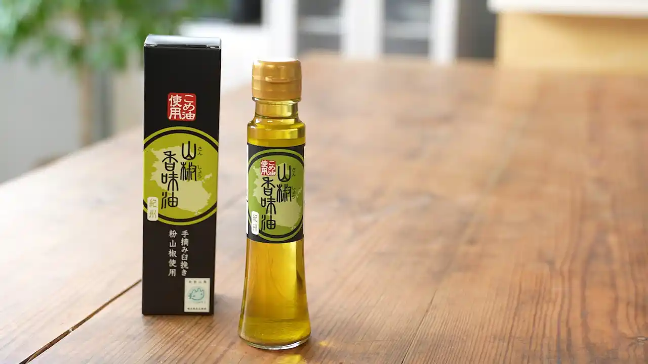 ◇【和歌山の特産品】山椒香味油 人気の国産こめ油500gと、和歌山県産のぶどう山椒がブレンドされた香り豊かな「山椒香味油」を詰め合わせました。山椒の香りが飛ばないように臼で丁寧に粉末にして、低温で抽出しながらじっくりと香りを引き出し香味油に仕上げています。山椒の刺激が味覚を鋭敏にして料理の味がより美味しく感じられる逸品。そうめんやそばの味変、サラダやお肉にかけても良し!少し変わったギフトとしても喜ばれます。 |