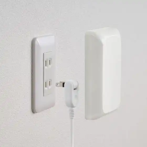 壁のコンセントにスイングタイプのプラグを下側に挿し込み、本製品を上側の差込口に挿すだけで、簡単に設置できます。 |