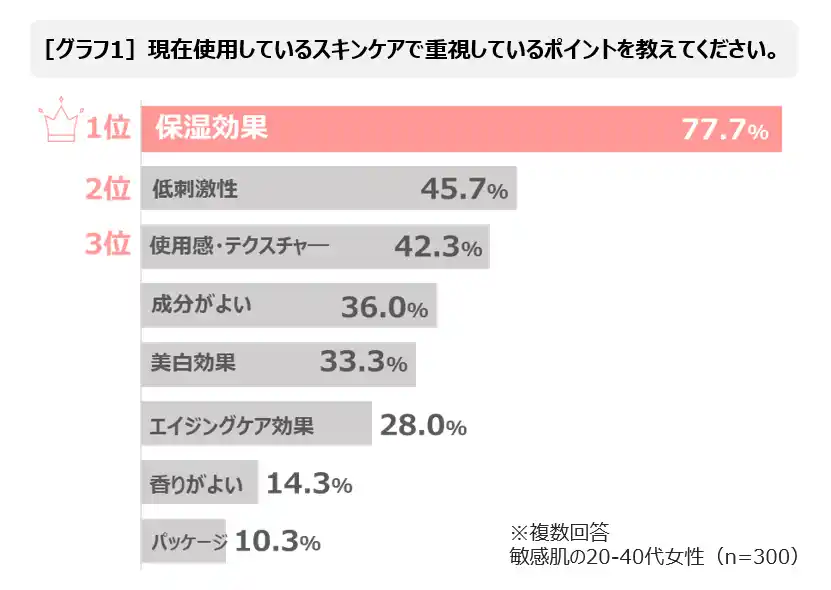 TOPIC1:敏感肌の約8割が、スキンケアで重視しているポイントは「保湿効果」と回答 |