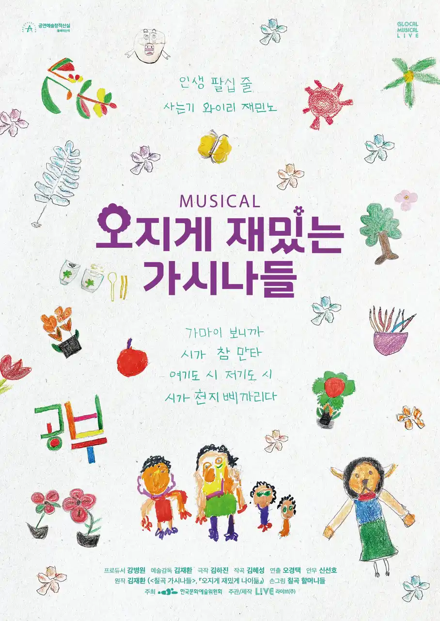 貧しいから、女だからと文字を学べなかったおばあちゃんたちを描いたドキュメンタリー映画が原作。ハングルを学ぶ彼女たちの人生と詩をもとにした心温まるミュージカルで、多くの人に感動を届けています。80歳を超えても日々学ぶ喜びを大切にするおばあちゃんたちの姿は、観客に新しいことに挑戦するのに年齢は関係ないという勇気を与え、親子3世代が一緒に楽しめる、心温まるファミリーミュージカルです。 |