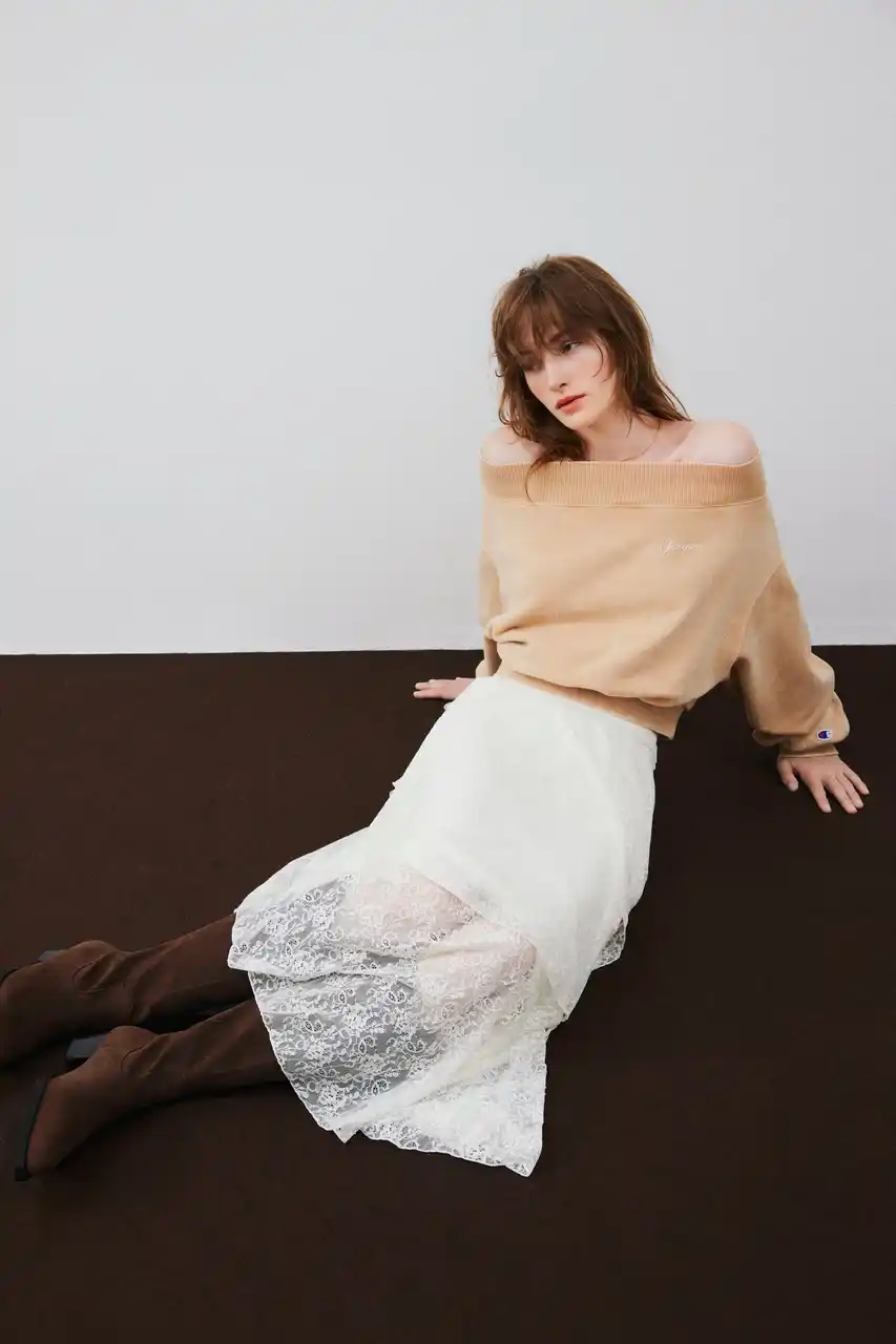 第12弾となる「Champion」との別注商品は、「Champion」の歴史あるカジュアルデザインにFRAY I.Dの女性らしいディテールを施し、エレガントな印象に仕上げました。肌が見えるカッティングが施されたTシャツやオフショルダースウェットトップス、やわらかいシルエットのフルジップパーカー、ビッグシルエットがフェミニンな着こなしを叶えるハーフジッププルオーバーの全4型を展開。 |